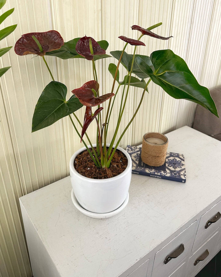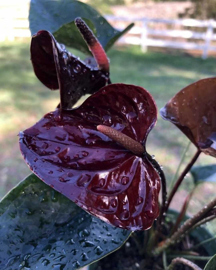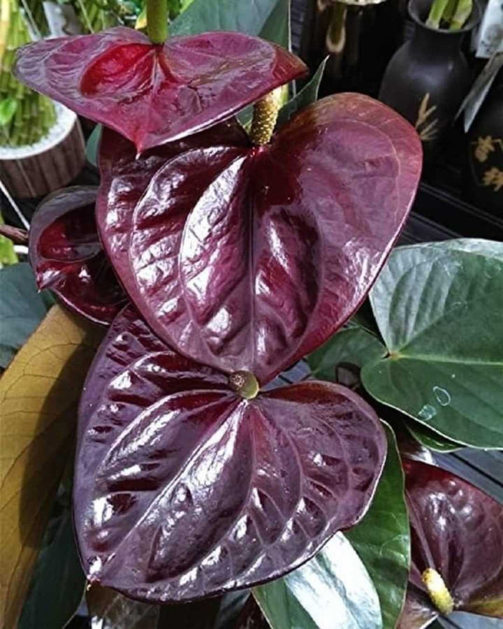 El Anturio Chocolate es una planta de interior con flores, su flor exótica representa la sofisticación y sus hojas tienen forma de corazón.