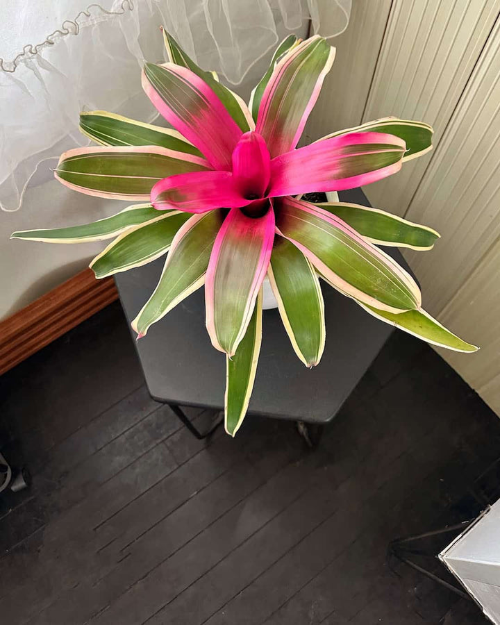 La Bromelia tricolor Rosa es un planta única, perfecta para regalar y sorprender a los tuyos. La Bromelia es una planta de interior popular por su atractivo aspecto y sus vistosas brácteas de colores brillantes.