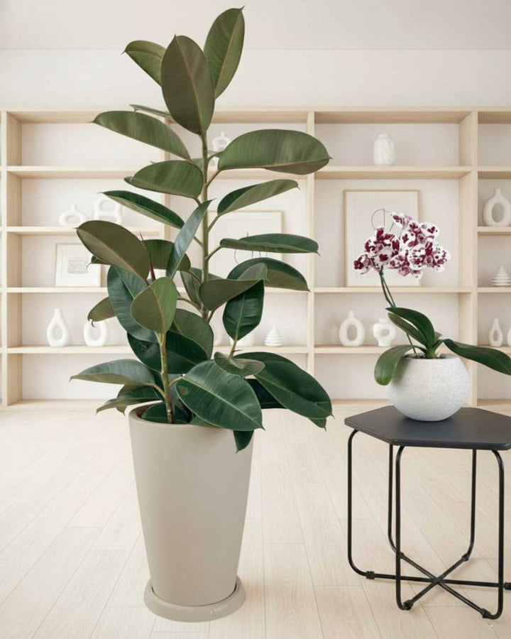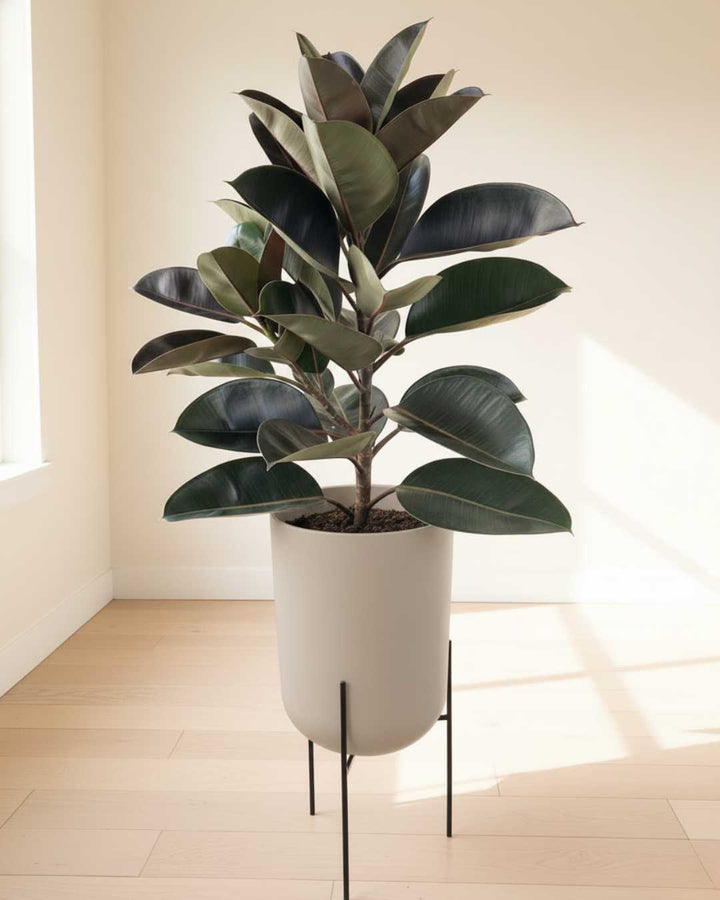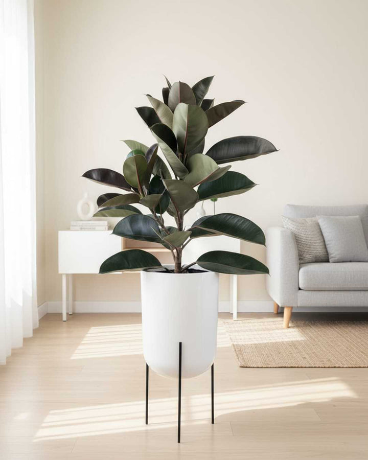Ficus Elastica en maceta fibra de vidrio y parante