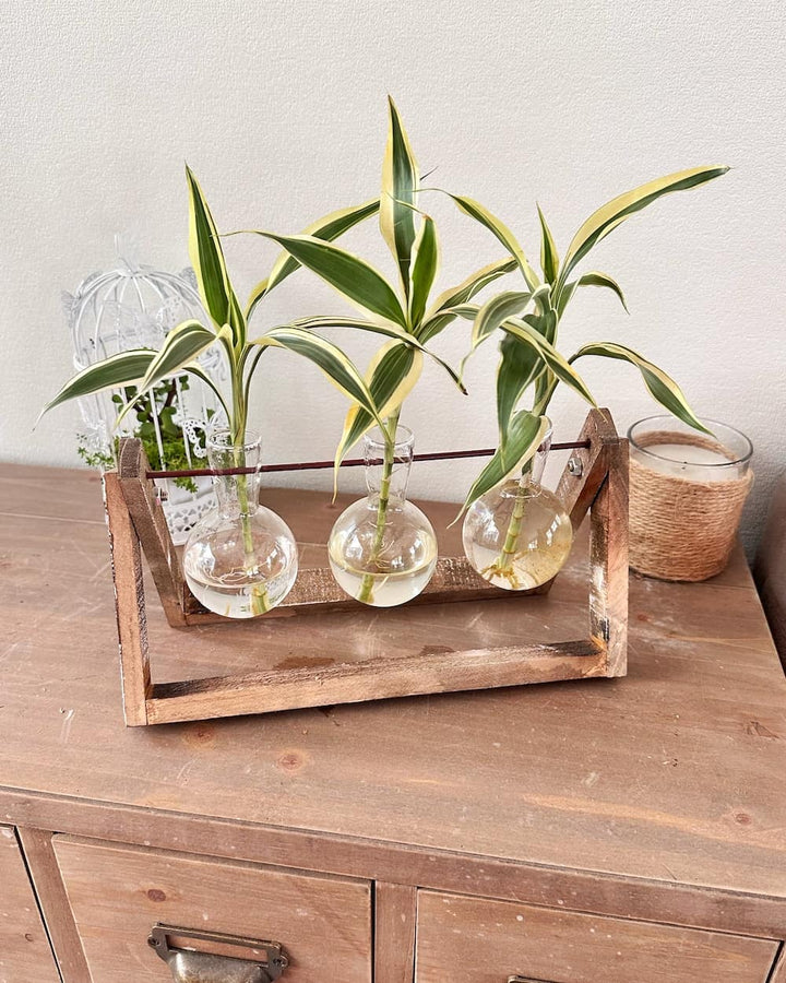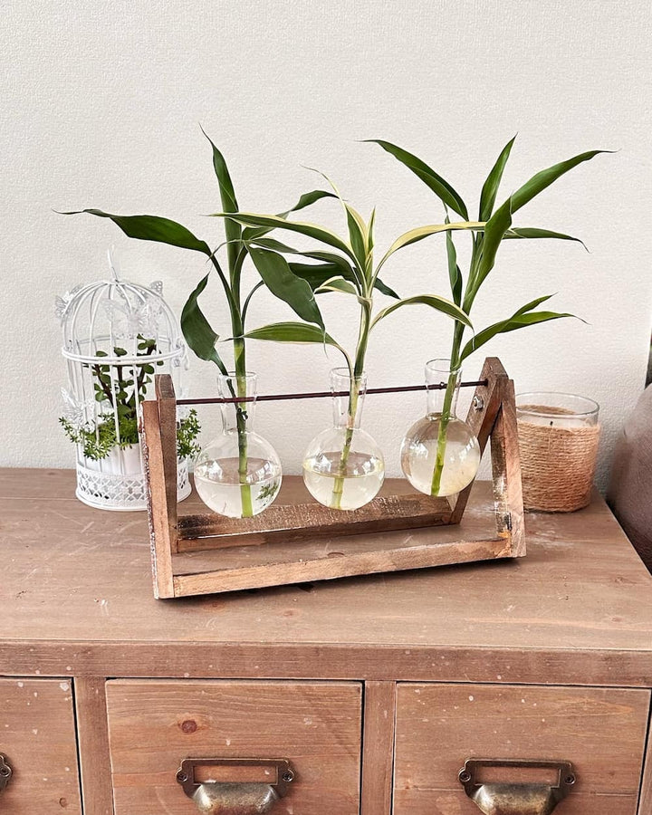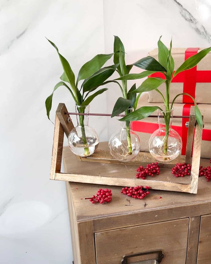Hidroterrario de vidrio con 3 plantas de bambú de regalo.