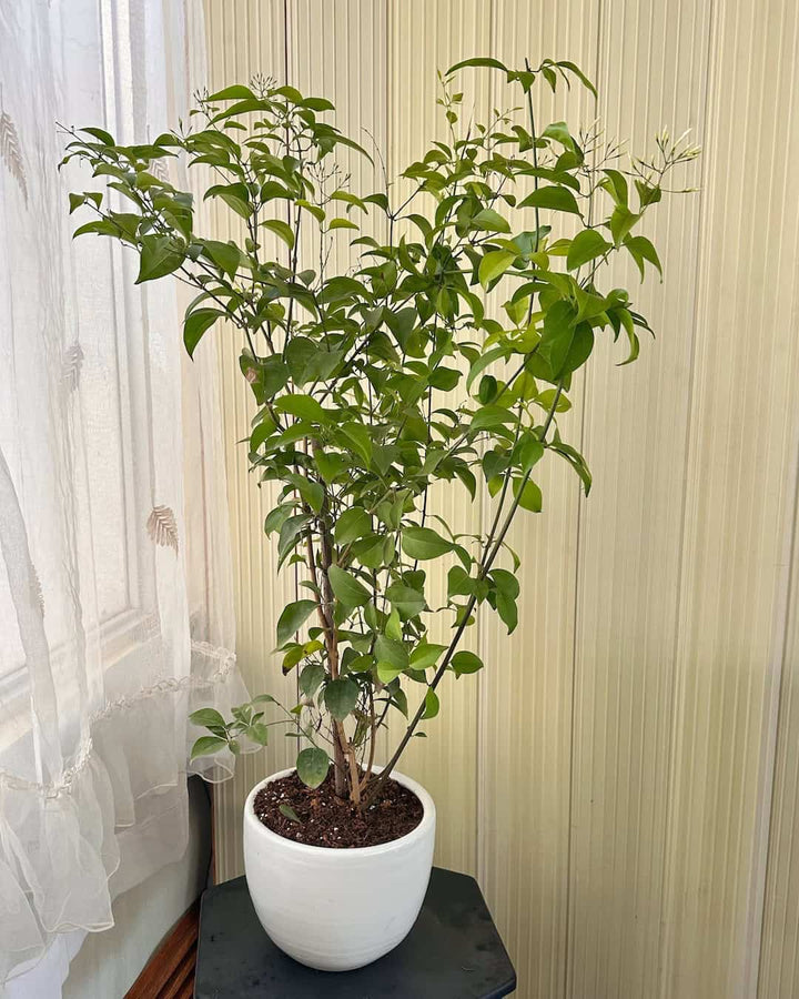 El Jazmin limón es una planta trepadora de exterior y de hoja perenne. Es apreciada por sus hermosas flores blancas, su amplio periodo de floración y sus flores perfumadas y color limón.
