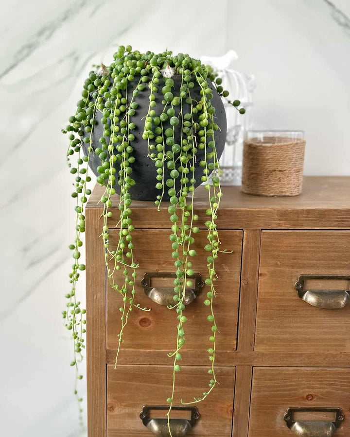 El rosario es una suculenta que también la conocen como Collar de Perlas, una planta maravillosa de hojas redondas, de sombra y que es una de las favoritas del feng shui