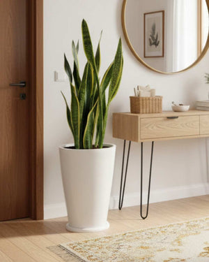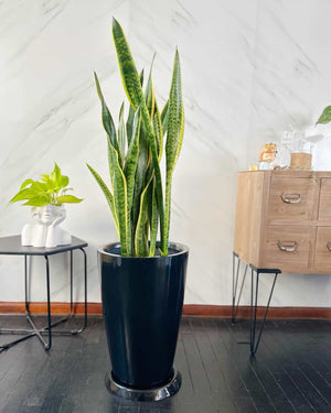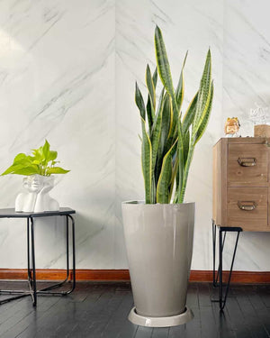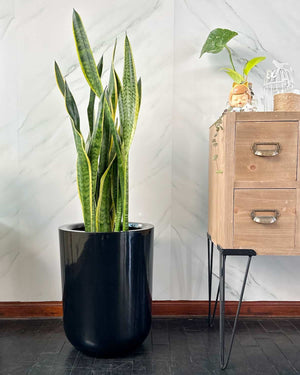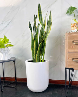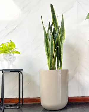 La Sansevieria "la planta más fuerte de todas" junto a la bella y liviana maceta de fibra de vidrio Milan.